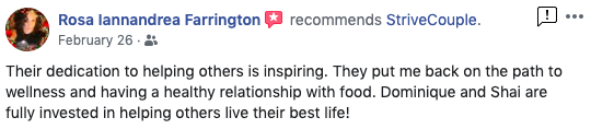 With 1,000’s clients, StriveCouple is one of the largest and most successful wellness & lifestyle coaches in the world. Dominique and Shai started this journey to lead a better life for their three children. The struggles and challenges of being overweight most of their lives were changed by a single decision. Shai holds a CrossFit Level-2 certification and has read and studied every ounce of material he could get his hands on related to health, fitness, and business. Dominique practices the art of cooking healthy food that tastes better than the bad ones because your journey should taste just as good as your results.